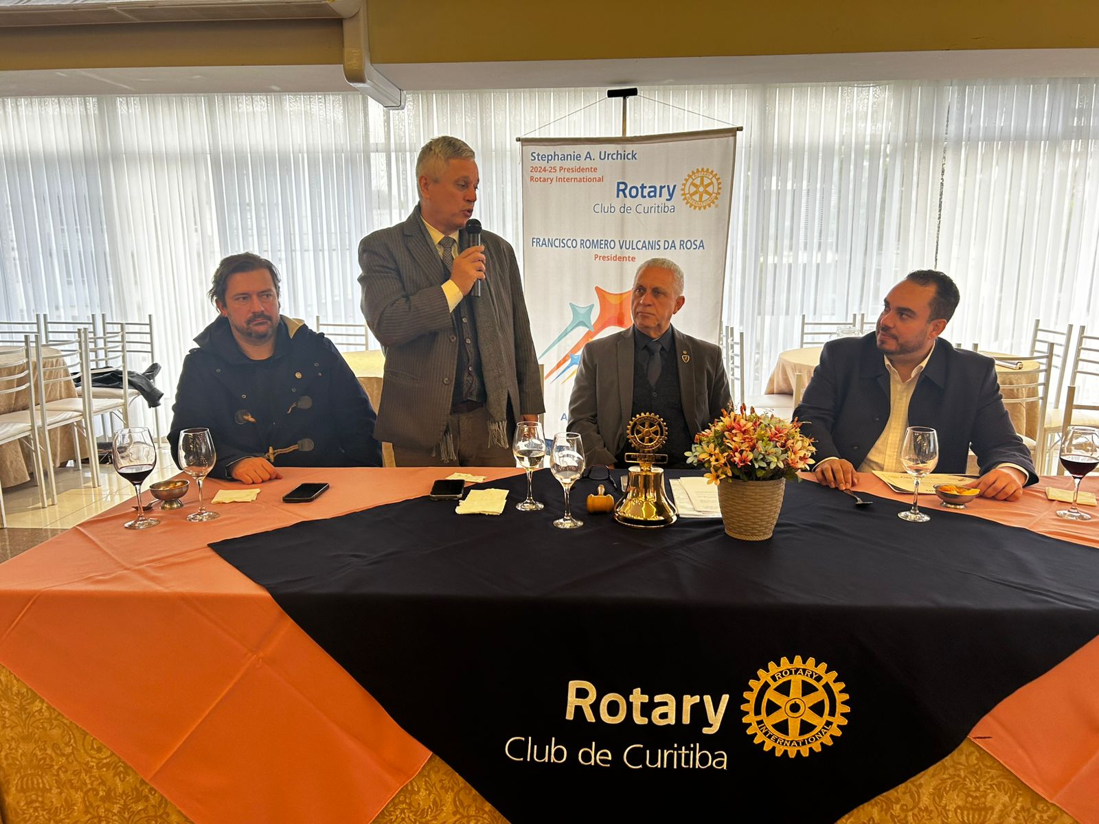 A Mesa Diretiva também foi composta pelo Governador eleito 20025-2026 do Distrito 4730, Marcelo Augusto Passos e pelo presidente do Rorary Club de Curitiba Alto da Glória, Giocondo Villanova Artigas Neto e pelo presidente do ano rotário 1990-1991, Fernando Vidal Pereira de Oliveira, o decano do colégio de presidentes do clube, que foi o primeiro da capital e do estado, fundado em 1933, há 92 anos em ação.