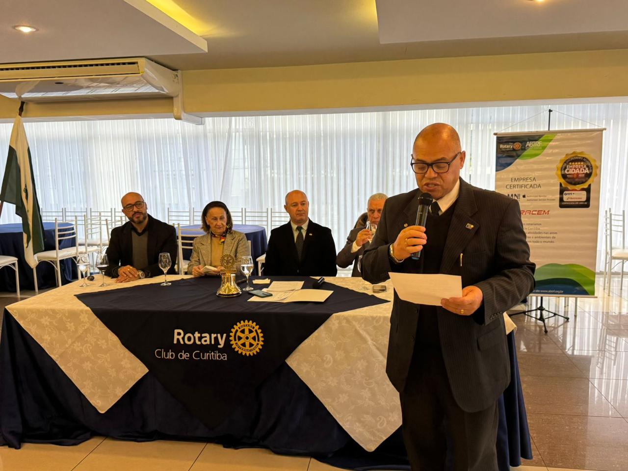 A mesa diretiva foi composta pelo palestrante Marcos Juliano, pela presidente do Centro Paranaense Feminino de Cultura Elieder Corrêa da Silva, pelo presidente do Rotary Club de Curitiba 2025/2026 Demétrius Fabiano Fernandes e pelo empresário e presidente 2024-2025, Francisco Romero Vulcanis da Rosa.