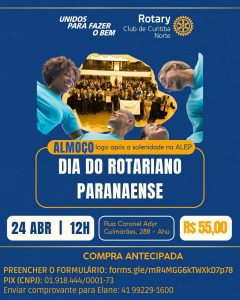 No próximo dia 24 de abril, às 10 horas, sob a presidência do Deputado Anibelli Neto a Assembleia Legislativa do Estado do Paraná – ALEP promove  Sessão Solene comemorativa ao Dia do Rotariano Paranaense, instituído através da Lei nº 17.009/2011 que inseriu a data no Calendário de Eventos Oficiais do Estado a ser comemorada anualmente em 27 de abril, dia da admissão junto ao Rotary International do primeiro clube fundado na capital e no estado, o Rotary Club de Curitiba, em 1933.